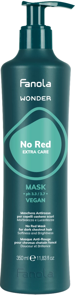 Fanola Wonder No Red haarmasker is een revolutionair product. Dit haarmasker is 100% vegan, verzorgt het haar intensief en neutraliseert ongewenste rode tinten, terwijl het de koele en egale kleur behoudt waar bruin haar om bekend staat. Na gebruik straalt bruin haar met een koude, pure en heldere tint.