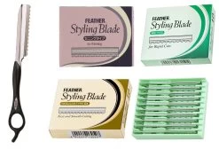 De Styling Blades van Feather zijn zodanig uitgevoerd dat er ook rekening met de veiligheid van de gebruiker en de klant is gehouden. De feathermesjes kun je gebruiken voor het uitdunnen van haar of voor het wegscheren van haren.