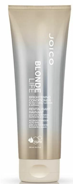 De Joico Blonde Life Brightening Conditioner 300ml is een intens voedende conditioner. De conditioner heeft de lichtheid van een lotion en de kracht van een serum. De Bio-Advanced Peptide Complex hersteld de beschadigde punten, het natuurlijke aminozuur wordt aangevuld. De Tamanu- en Monoï olie hydrateert het haar en zorgt ervoor dat het haar anti-pluis word. Na gebruik ziet het haar er weer glanzend uit.