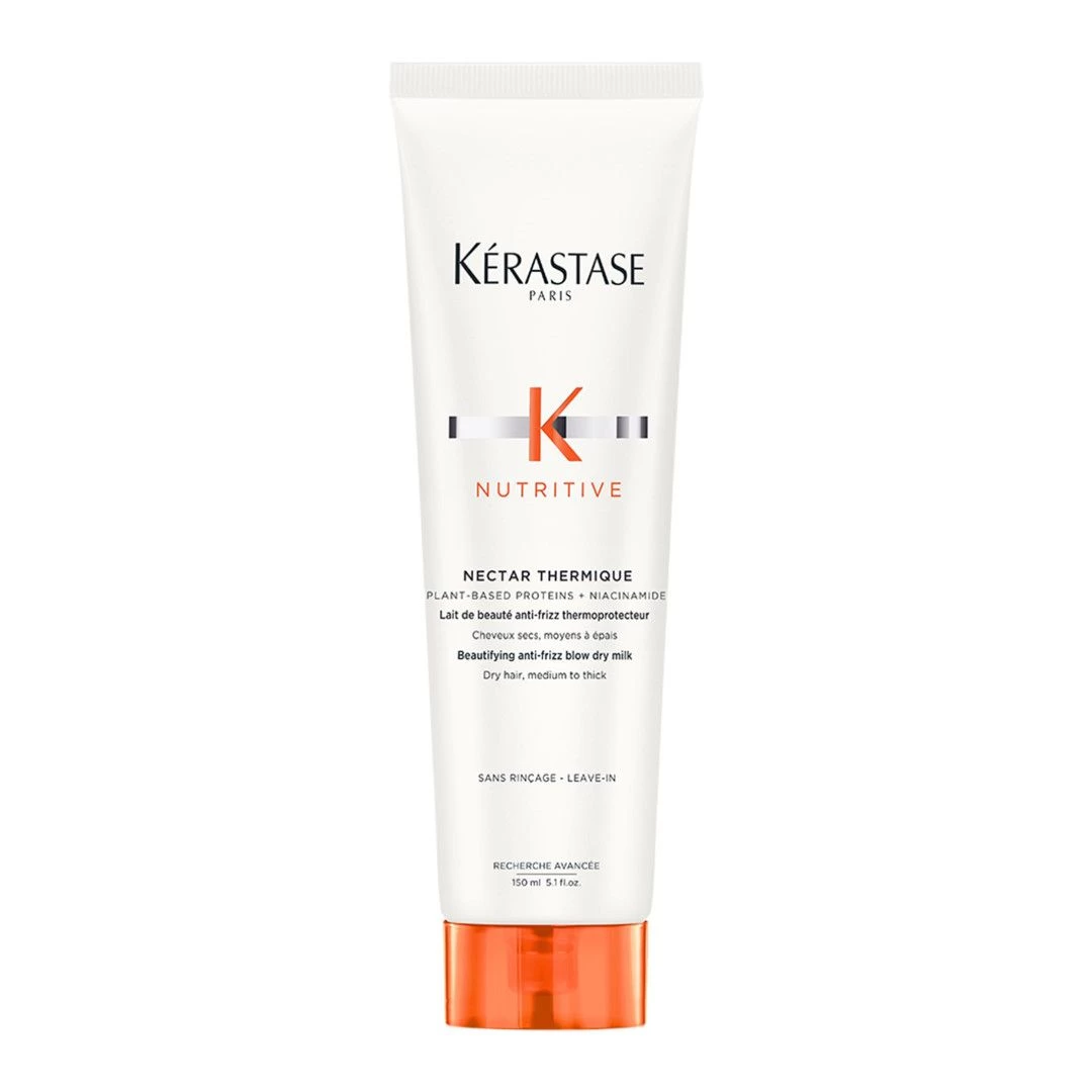 Kérastase Nutritive Nectar Thermique is een verfraaiende haarmelk die een beschermende film rondom het haar vormt, waardoor het wordt beschermd tegen chronische droogheid. Vergeet opvliegende haartjes en kroezen, want deze formule temt ze moeiteloos. Na elk gebruik voelt het haar zijdezacht, soepel en stralend aan.