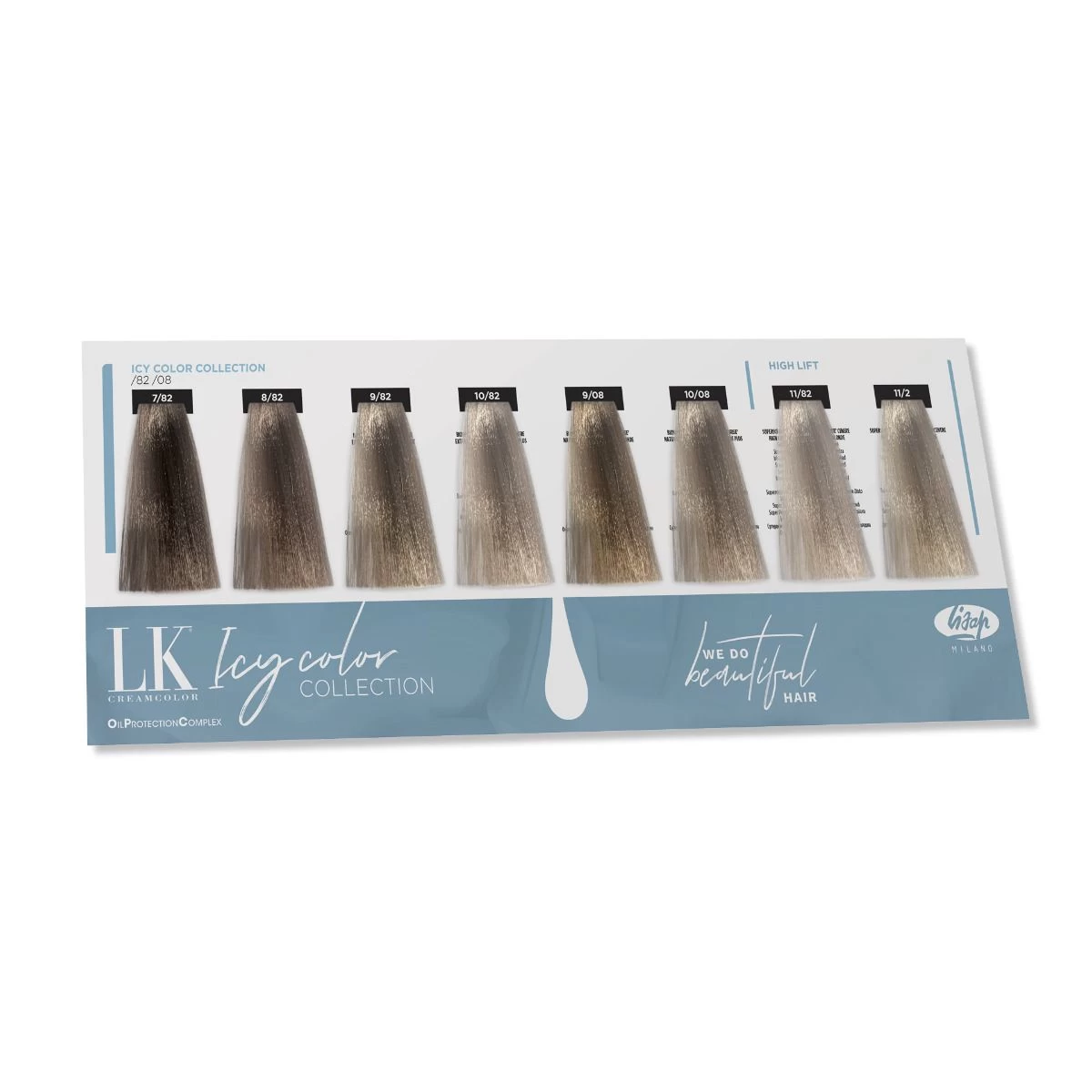 De Lisap LK OPC Icy Color Collection Kleurenkaart bevat een overzicht van de kleuren uit de Icy Color Collection van Lisap LK Creamcolor OPC. Zo kun jij precies zien hoe een bepaalde kleur (ongeveer) zal uitvallen op het haar.