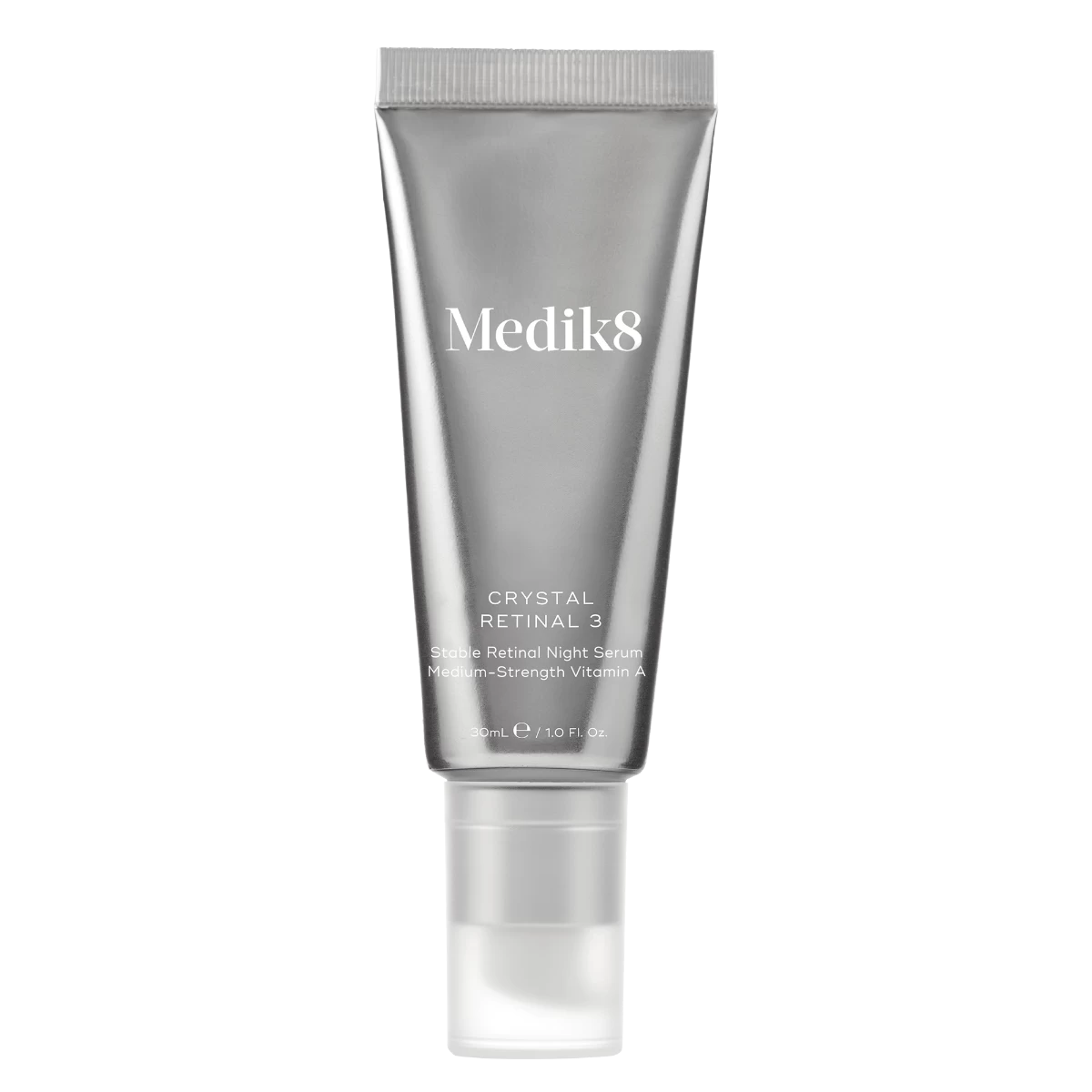 Medik8 Crystal Retinal 3 is een baanbrekend serum dat 11x sneller in de huid werkt dan klassieke retinol. Geschikt voor mensen die nieuw willen starten met vitamine A, een vitamine A tolerantie willen opbouwen of die vroege tekenen van huidveroudering willen voorkomen.