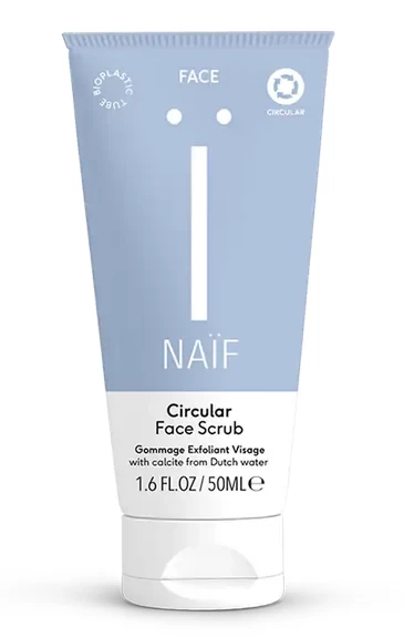 De Naïf Grown Ups Circular Face Scrub is een natuurlijk zuiverende gezichtsscrub die de huid reinigt en dode huidcellen verwijdert.