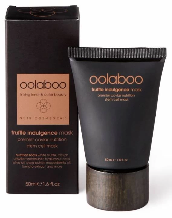Het Oolaboo Truffle Indulgence Premier Caviar Nutrition Stem Cell Mask 50ml is het anti-aging gezichtsmasker van Oolaboo. Dit gezichtsmasker is geschikt voor de rijpere huid. Het masker bevat witte truffelolie, kaviaar en Uttwiler Spätlauber (Zwitserse appel). De huidstamcellen worden beschermt tegen invloeden van buitenaf, daardoor wordt de levensduur van stamcellen van de huid verlengd. Bij regelmatig gebruik zal de huid voelbaar elastischer worden en diepere rimpels worden verminderd.