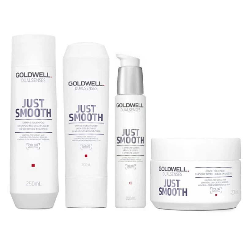 Het Pluizig haar pakket van Goldwell Dualsenses Just Smooth bevat de volgende producten:
