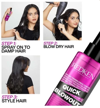 De Redken Quick Blowout Spray is een lichtgewicht föhnspray die ervoor zorgt dat het haar wordt beschermd bij gebruik van hittetools. Deze spray beschermt het haar niet alleen, maar maakt het haar ook nog eens gladder, verzacht, hydrateert en geeft glans.