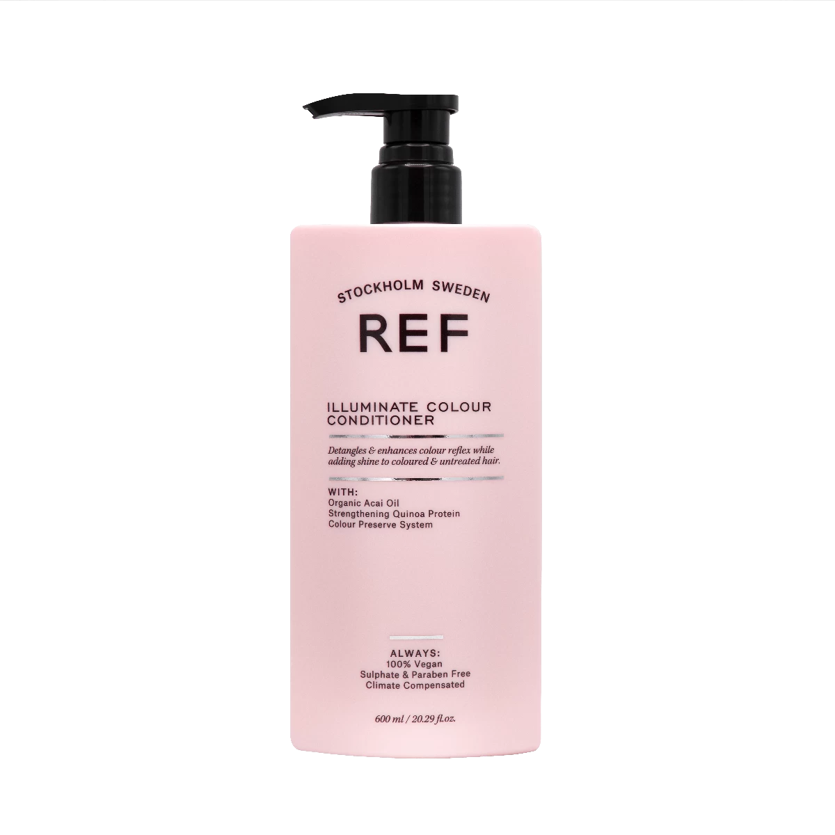 De Illuminate Colour Shampoo en Conditioner van REF beschermen, versterken en geven glans aan gekleurd haar dankzij de botanische extracten die erin zitten. De verzorgingsproducten zijn geschikt voor alle haartypes, maar is vooral perfect voor gekleurd haar.