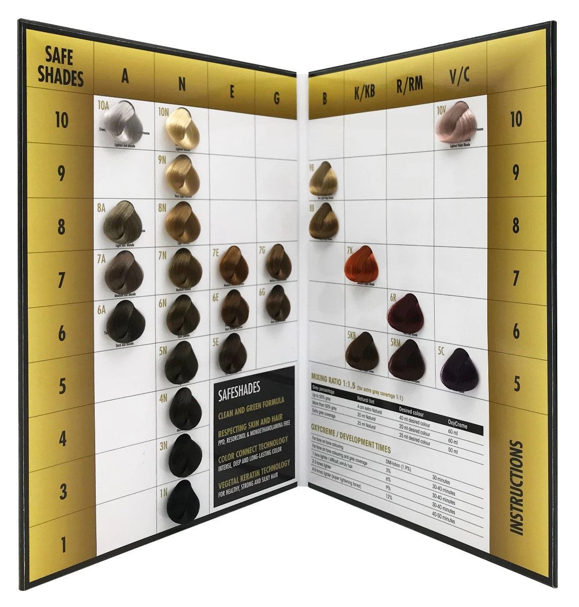 De perfecte kleur bepalen voor een klant is een stuk gemakkelijker geworden dankzij de Royal KIS SafeShade Colorchart (kleurboek). Het boek bevat alle Royal KIS SafeShade kleuren. De SafeShade permanente haarkleurcrème is de nieuwe generatie permanente haarkleuring met Color Connect Technology en Vegetal Keratin Technology. De kleuring heeft 75% langer houdbare kleuren, 23% meer kleurintensiteit en geeft 100% grijsdekking. Daarnaast is Royal KIS SafeShade vrij van PPD, MEA en Resorcinol en heeft het een laag ammoniapercentage (maximaal 1% bij mengverhouding 1:15). Bestel nu de Royal KIS SafeShade Colorchart en alle Royal KIS kleuringen op Haibu. Indien je graag op de hoogte wordt gehouden van nieuwe ontwikkelingen, nieuwe producten en leuke aanbiedingen, schrijf je dan nu in voor onze nieuwsbrief!