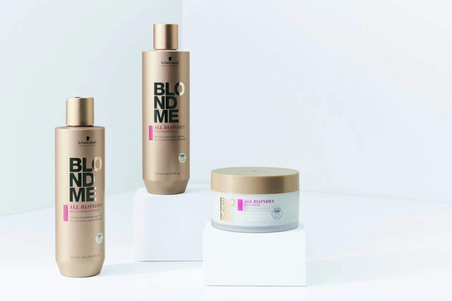 Gebruik op droog haar: Breng het All Blondes Rich Mask aan en laat het 10-15 minuten inwerken. Spoel het haarmasker grondig uit en reinig het haar daarna met de BlondMe All Blondes Rich Shampoo van Schwarzkopf.