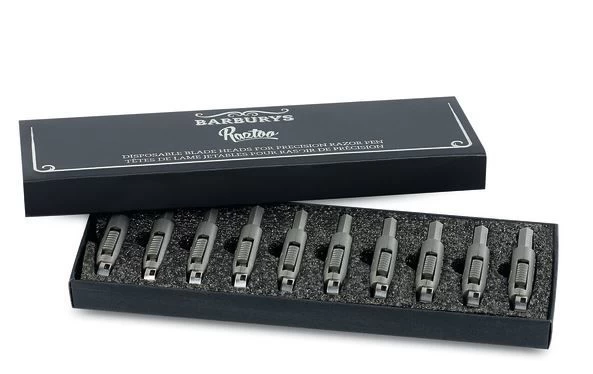 De Barburys Raztoo mesjes zijn de navul mesjes voor de Barburys Raztoo Razor Pen. Het doosje bevat 10 navul mesjes.