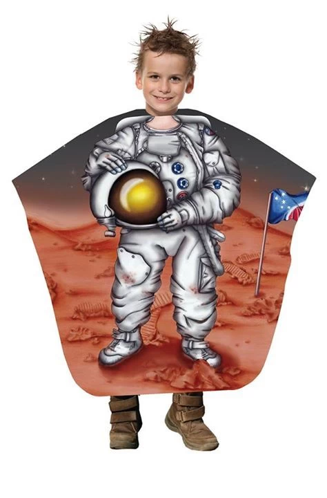 “De Kinderkapmantel Astronaut is de musthave voor elke kapsalon. Deze Kinderkapmantel Jockey is gemaakt van 100% polyester en is speciaal gemaakt voor de stoere kleine jongens onder ons! Met deze kapmantel met opdruk van een astronaut zal hij het gevoel hebben dat hij net is geland op mars en nu een hele knipbeurt de tijd heeft dit te ontdekken. De Kinderkapmantel astronaut heeft wordt van achter dichtgemaakt met een haaksluiting en heeft een afmeting van 135x125cm. Knippen zal niet langer vervelend zijn voor kinderen door middel van de leuke kapmantels van Trend-Design!
